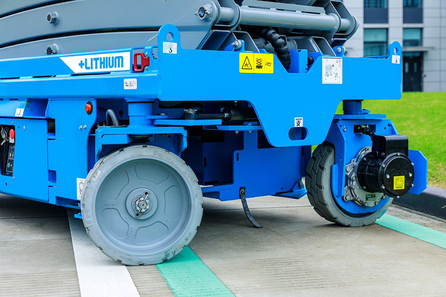 The Genie® GS™-2646 slab scissor lift is suitable for work indoors and outdoors on firm, level surfaces where space is limited. Its state-of-the-art Genie AC electric E-Drive system offers unmatched efficiency and runtime on installation, maintenance and construction jobs where a significant amount of driving is required.